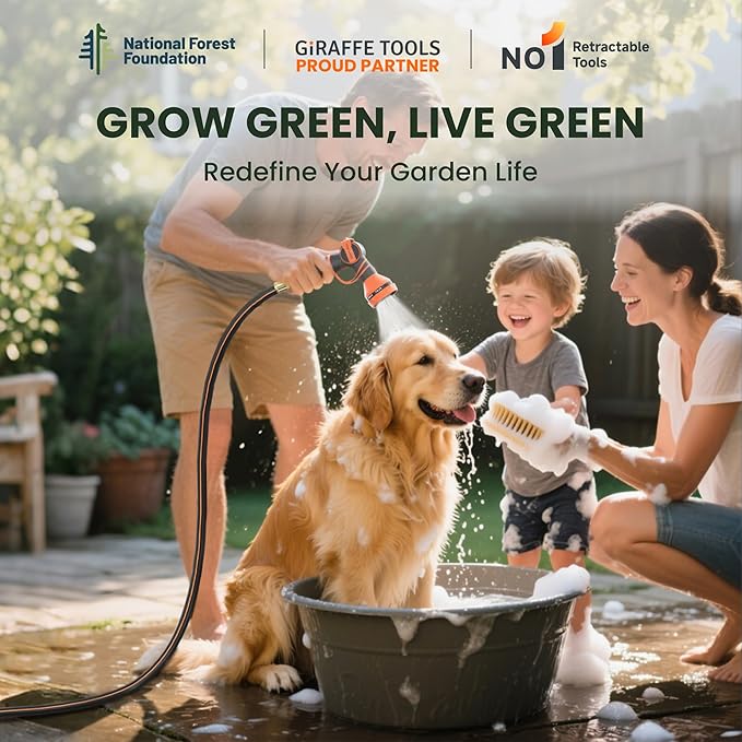 - Lock at Any Length: A 155-foot hybrid hose that can be locked to any length is pre-installed on the Giraffe hose reel, ensuring that every area of your garden is covered.