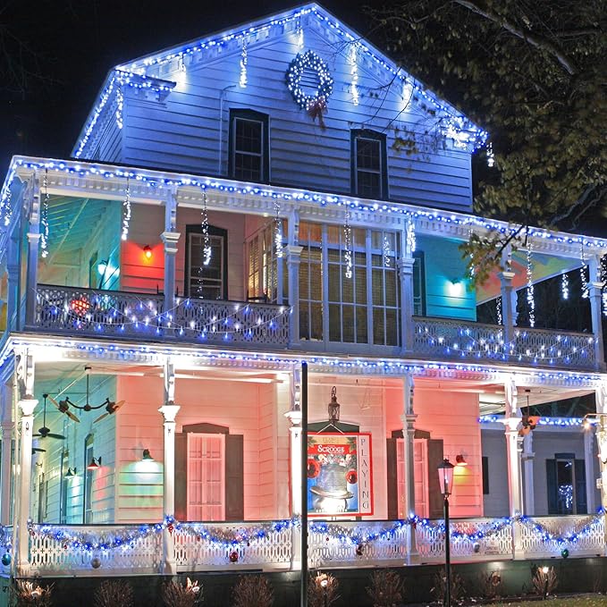 - Connectable LED Christmas Lights: Total length: 33m/109ft, LED string light length: 30m/99ft, lead wire length: 3m/10ft. Blue and white Christmas lights come with male and female safety plug, connect up to 3 sets lights, the connectable led string lights are perfect for decorating large areas.