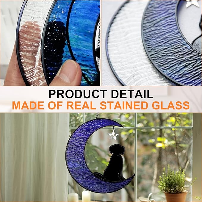 - 🐾【Real Stained Glass NOT Acrylic】Handmade Stained Glass dog memorial gifts is real glass not acrylic as many suncatchers are.The colors are nice and bright and the details are pretty,which is color-fast. It is a good choice for home decoration,whether hanging on the window or the wall.All items are designed by ourselves that got copyright protection already.