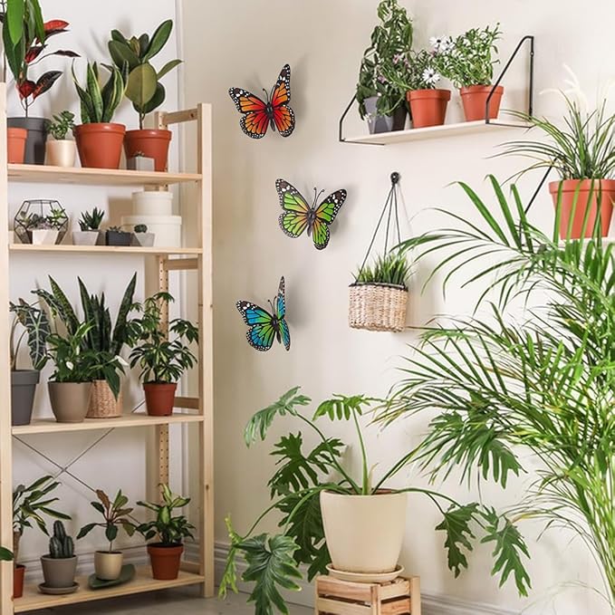 - Package Include: Set of 3 PCS lifelike metal butterflies with realistic patterns and bright colors that will give you more energy no matter where you decorate. Butterfly size: 9.8''(L)x6.8''(W)