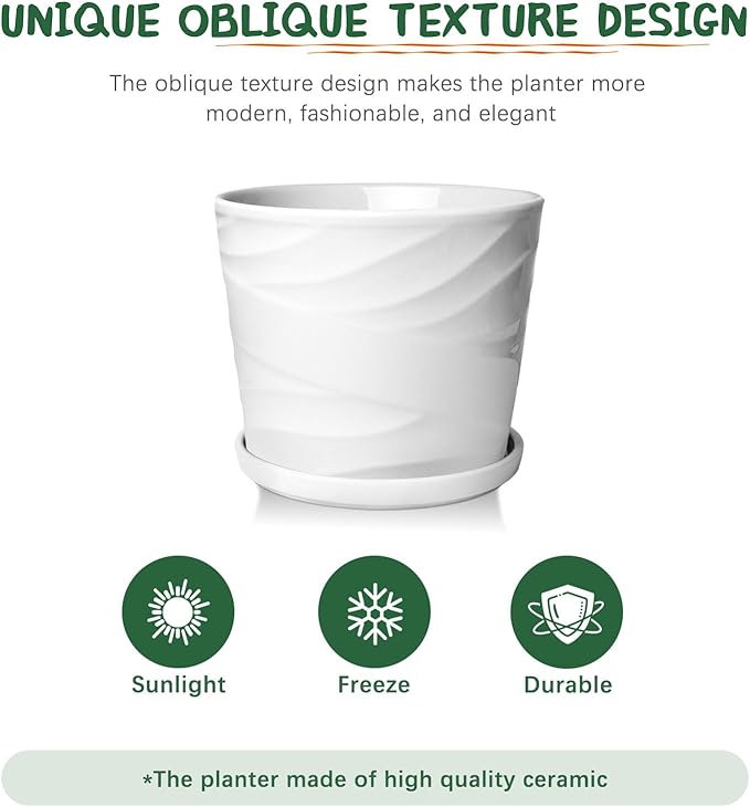 - 【With Drain Holes and Saucers 】 The drain hole in the middle of the bottom of the planter can drain out excess water, allowing the plant to grow healthier. There are saucers to catch excess mud and water so as not to stain the floor.