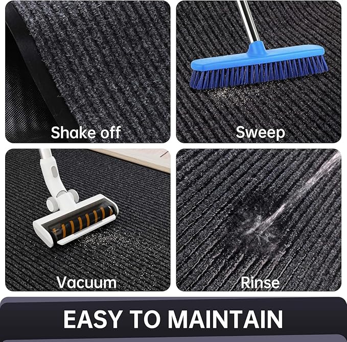 - EASY TO CLEAN: Simply shake, sweep, or vacuum the entrance floor mats to remove dust and debris. For a deeper clean, rinse with a hose and air dryโfront door mats will quickly returns to its original condition.