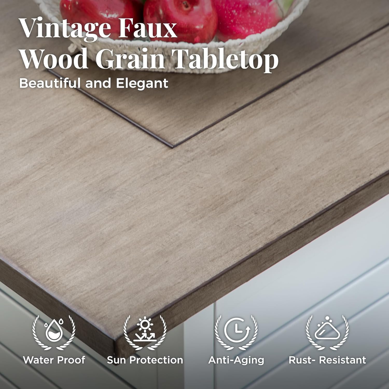 - 【ELEGANT DESIGN】: The wood-like table top adds a touch of elegance and texture to your outdoor space, while also being easy to clean and maintain for long-lasting use