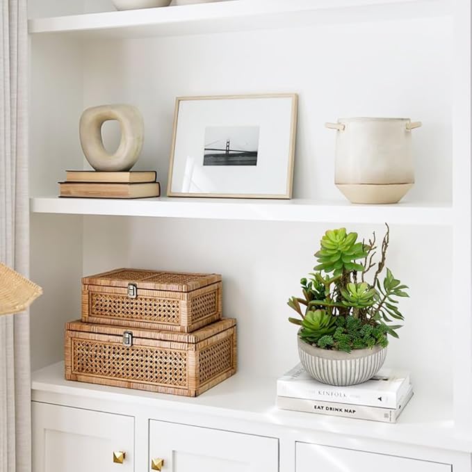 - Artificial potted plants decor: Small fake succulents are perfect for home, office desk, bedroom, bathroom shelf, kitchen, apartment, cafe, etc, faux plants in pots will add a natural accent to your home decor.
