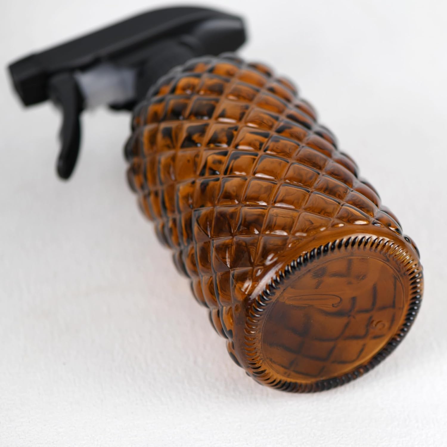 12Oz Glass Plant Spray Bottle, Gem Pattern Glass Sprayer, Watering Can with Black Plastic Top Pump, Handheld Watering Can for Indoor Outdoor Potted Plants and Greenery (Amber)