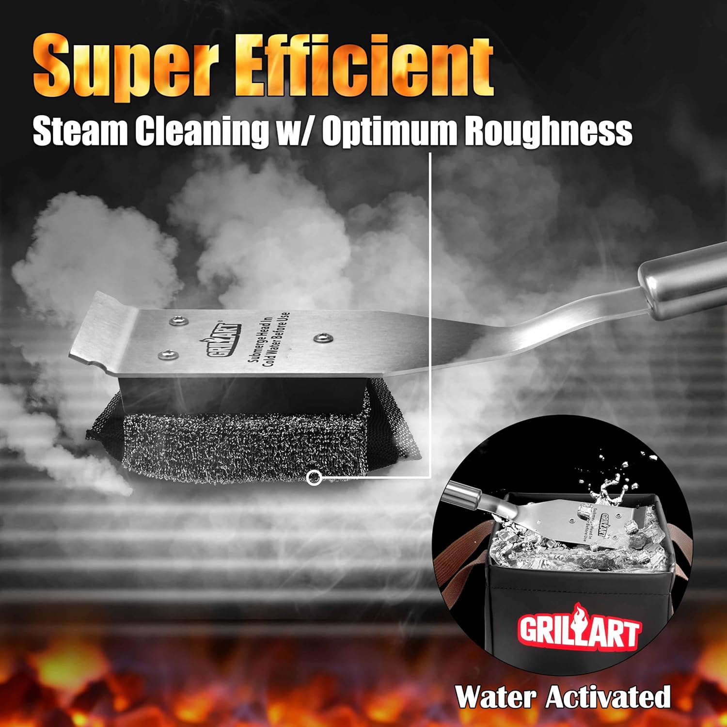 GRILLART Grill Brush Bristle Free, Safe Grill Brush for Outdoor Grill, SteamWizards BBQ Grill Cleaning Brush Kit, Replaceable Head Grill Scraper Tool, Grill Cleaner BBQ Accessories, Gifts for Men/Dad