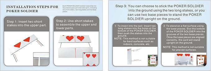 - Large Size: the size of Queen's Soldiers Yard Signs: 14 * 22.8 inch, the height of Queen's Soldiers Yard Signs' base: 2 inch, 8 pcs long stakes: 13.8 inch, 8pcs short stakes: 6 inch. They will bring you excellent visual effects