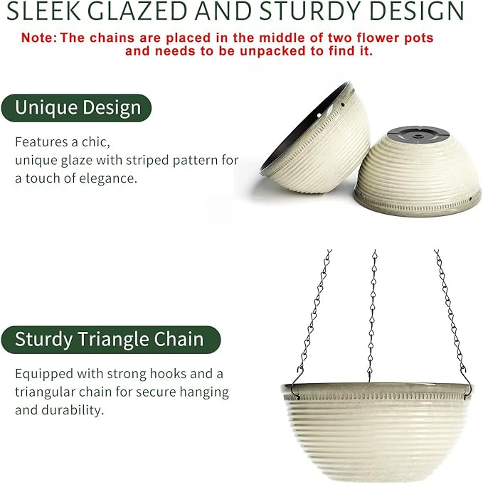 - Stylish Glazed Design: Hanging planter made from sturdy plastic with a glazed finish, this 10 inch hanging pot offers a sleek, modern look that complements any décor. Perfect for both indoor and outdoor use.
