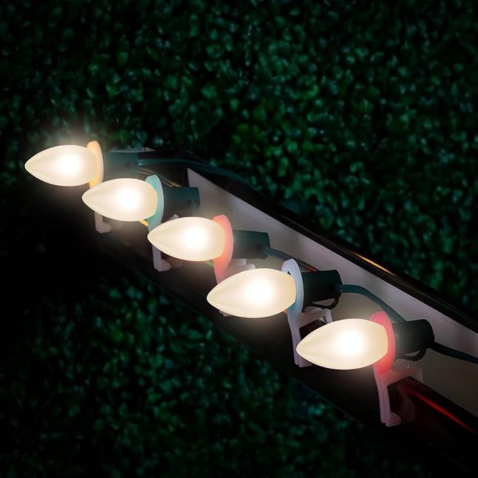 - Quick and Simple Installation: Decorating is a snap with warm white outdoor lights! Perfect for illuminating your tree, draping over your patio, or enhancing garden spaces, the E17/C9 candelabra socket base and clip design make setup fast and straightforward.