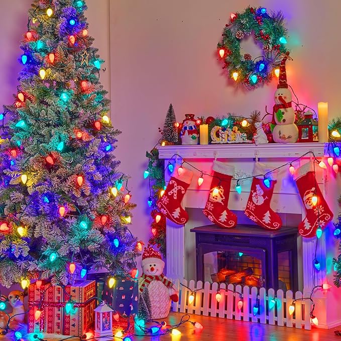 - 【 Connectable Up to 33 Sets 】- You can connect up to 33 sets of these C9 LED Christmas string lights end to end, providing convenience for decorating large areas or substantial outdoor objects such as rooflines or oversized trees