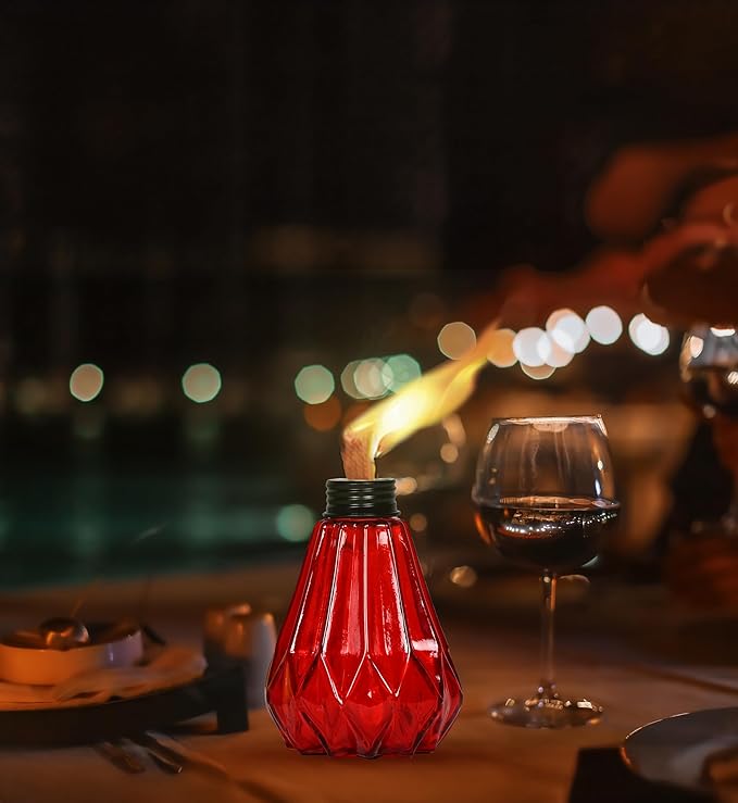 - LIGHT UP WITH EASE: Our offered tabletop table torches feature thick ceramic, high quality fiberglass wicks, and snuffer caps. For best burn, fill the canister with fuel, insert the wick so it's no more than ยฝ" above the canister, and allow it to saturate for 10-15 minutes. These tips will ensure that the wick will last the lifetime of your torch.