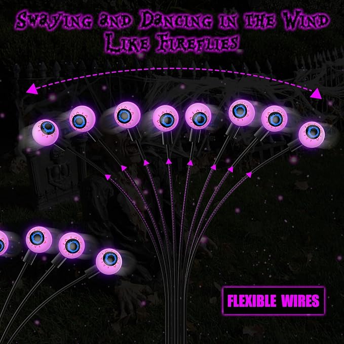 - 【Perfect Outdoor Halloween Decorations】 The Halloween must haves scary eyeballs Halloween solar Lights are perfect for decorating Halloween parties, gardens, yards, lawns, front porches, and flower pots. Present it as a Halloween gift to your family, neighbors, and friends and enjoy these fun Halloween decorations together!