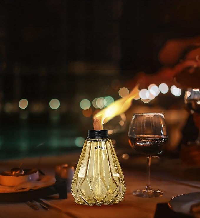 - LIGHT UP WITH EASE: Our offered tabletop table torches feature thick ceramic, high quality fiberglass wicks, and snuffer caps. For best burn, fill the canister with fuel, insert the wick so it's no more than ยฝ" above the canister, and allow it to saturate for 10-15 minutes. These tips will ensure that the wick will last the lifetime of your torch.
