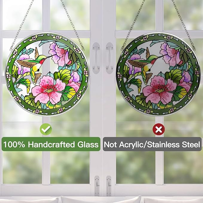 Godferyxin Stained Glass Suncatcher Handmade Glass Hummingbird Suncatcher 8" Stained Glass Hanging Decoration for Window or Wall for Mom,Grandma,Teacher,Friend