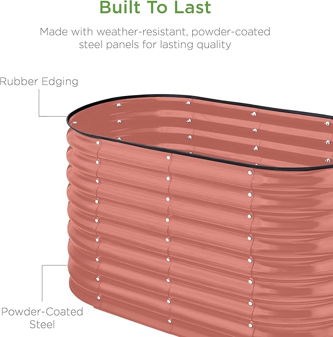 Best Choice Products 4x2x2ft Outdoor Metal Raised Garden Bed, Oval Deep Root Planter Box for Vegetables, Flowers, Herbs, and Succulents w/ 101 Gallon Capacity, Rubber Edge Guard - Terracotta