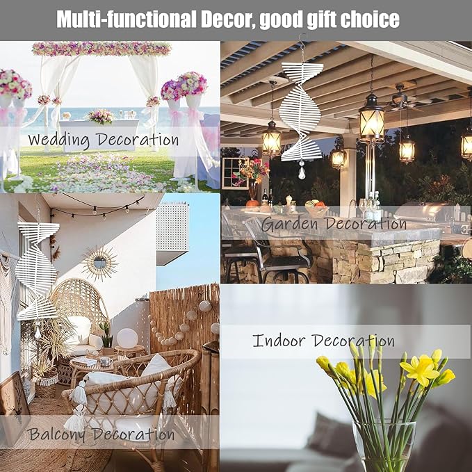 - 【Easy Assemble and Hang】 With easy to follow instructions for installation, no additional tools are necessary. Just pull and tweak to fan out the sections evenly. Simply hang the wind spinner in a location which catches the breeze and enjoy the kinetic movement of our outdoor wind spinners in the slightest of breeze. Designed with a hole on the bottom edge, you can hang some pendants and accessories according to your preferences.