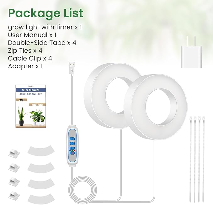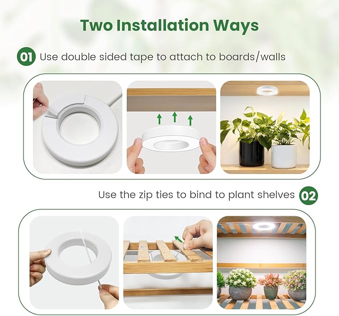 - Two Installation Methods: Effortlessly install the growing lamp using the included zip ties, and strong double-sided tape, and it also comes with wire clips for a secure and tidy setup. Create a thriving indoor garden with this versatile plant grow light.