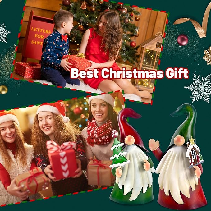 - Christmas Holiday Decor: These charming metal gnome figurines, with vibrant hats on their heads, hold a Christmas tree, gingerbread house, 3D design makes them look more realistic and vivid, adds a whimsical touch to your holiday and Christmas decorations