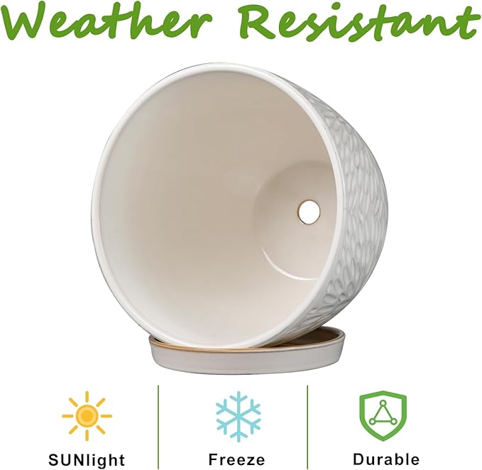 - Ideal Size: Each ceramic flower pot is 7 D x 6.5 H, which can provide enough space for your plants to thrive. One package includes ceramic planter, ceramic tray and mesh