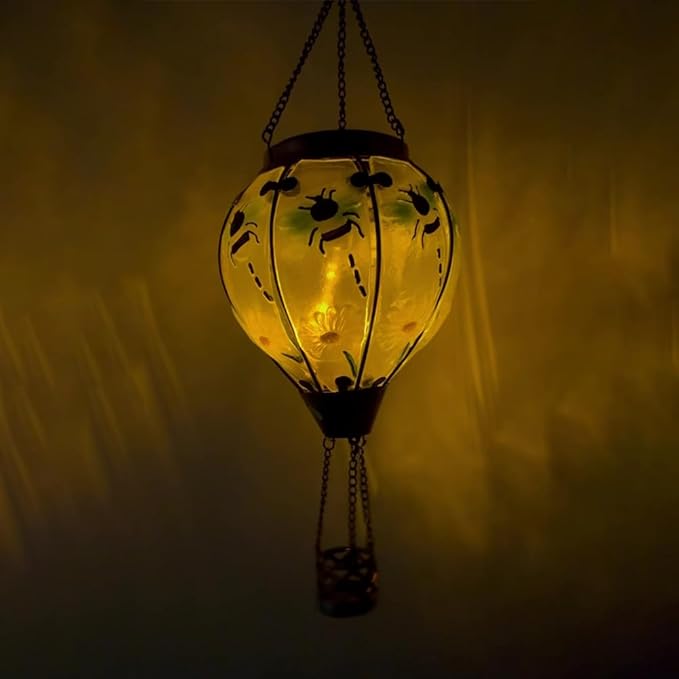 - Solar Hanging Outdoor Lights: hot air balloon solar lights with flame flashing, equipped with high efficiency solar panels and 600mAh/1.2V nickel-metal hydride batteries; Charge 6-8 hours, work 6-8 hours