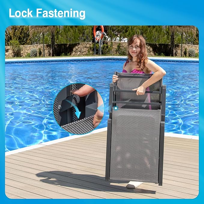 - 【Arriving Assembled & Foldable Design】FHVIT folding pool lounge chair is designed for quick setup and foldability. Simply unfold and secure the frame, and it's ready to use in just 3 minutes. Effortless and convenient, the lounge chairs can also be stacked to save space when not in use