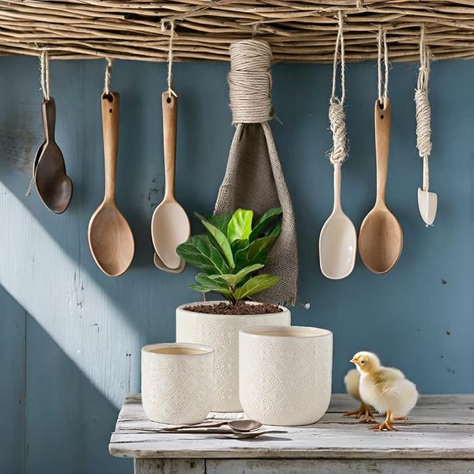 - Plant Pots Ceramic: 6.5+5.3+4 inch flower pots with drainage holes and saucer , which can be used to collect excess water without leakage, preventing bottom water from corroding plant roots.