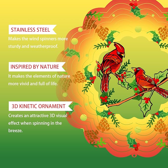 - 【Perfect Gift Idea】These red cardinal spinners can not only be used as outdoor patio parties or home decorations but also as Mother's Day, Father's Day, Thanksgiving, Christmas, birthday, and housewarming gifts for your mom, grandmother, wife, and other family members, friends or yourself.