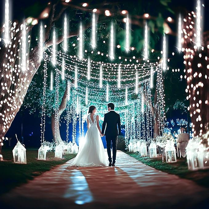 - 【Equivalent to 3 Sets of 8-Tubes, Money-saving】Our 24-tube meteor shower lights has 24 tubes, which is equivalent to 3 sets of 12 Inch 8-tube meteor shower lights in decorative effect, but the price is lower than 3 sets of 8-tube, which is a great savings. Also you don't have to string them up like 8 tubes, making your holiday decorating easier and less time consuming