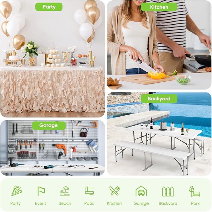 - Versatile & Practical: Whether you're hosting a party or looking for a workspace solution, this versatile folding table is perfect for use in a variety of indoor and outdoor settings, including patios, gardens, poolside areas, lawns, and more