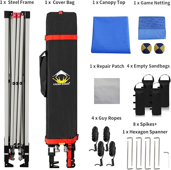 - STOโ N GO SYSTEM - Our lift-free system makes collapsing, storing, and transporting the 10x10 tent a breeze. The 10x10 tents can be stored with the fabric attached, with a specialized pocket for 4 sandbags, 8 stakes, and 4 guy ropes. Integrated wheels in the feet allow easy movement even when the instant shelter tent is set up, by simply lifting the side without wheels. This feature is especially useful for quick setup and takedown at locations like the patio or sports events