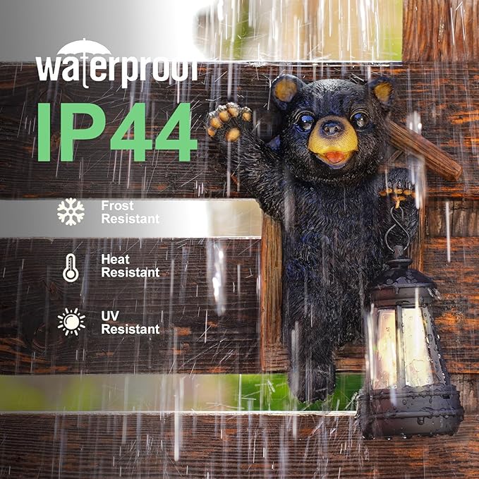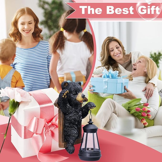 Black Bear Decor with Solar Lantern Tree Hugger - 7 Inch Bear Statue Outdoor Garden Yard Decor,Best Bear Garden Gifts for Mom,Women