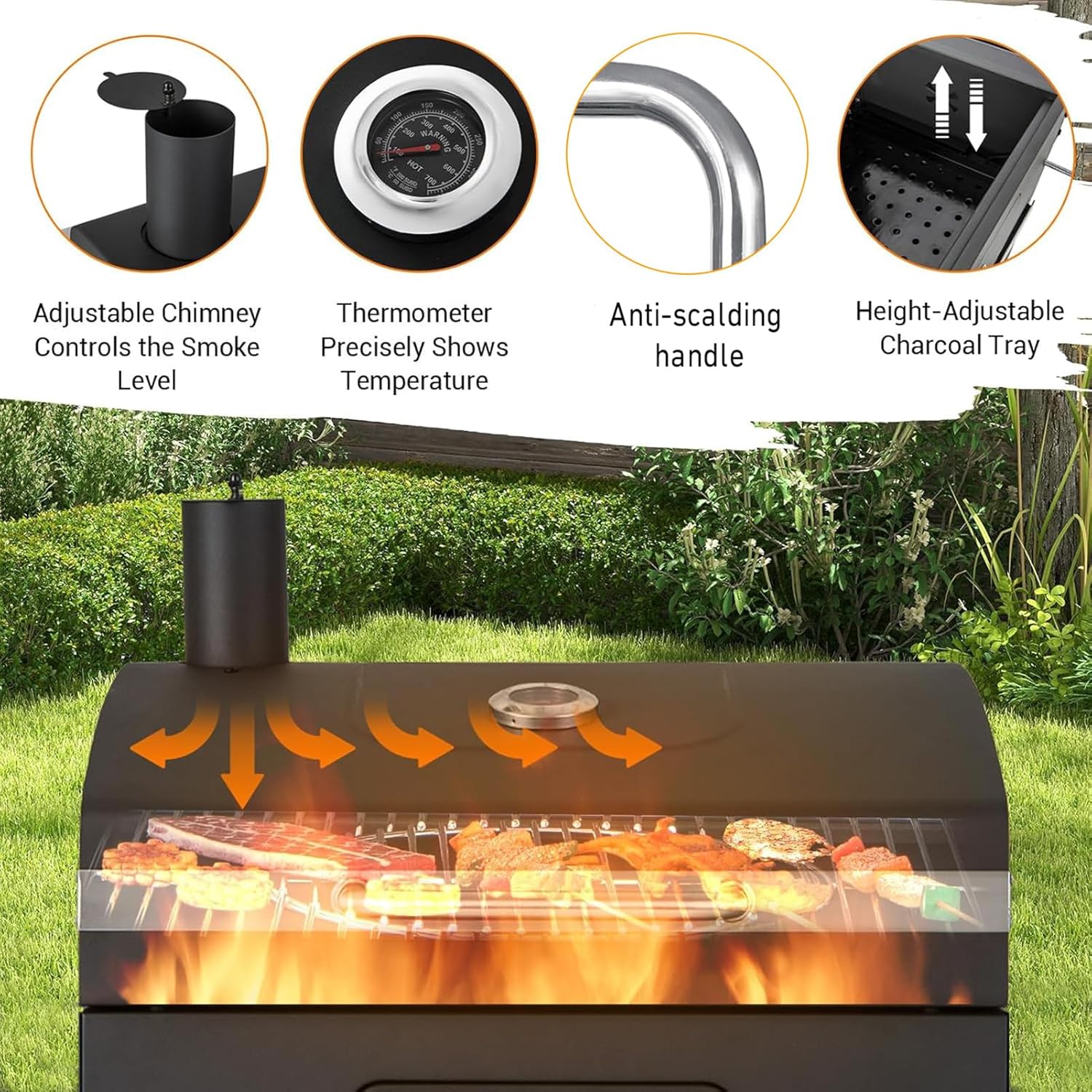 - Liftable Charcoal Tray & Temperature Gauge๏ผLiftable Charcoal Tray & Temperature Gauge The liftable charcoal tray lets you easily adjust the flame height, while the built-in temperature gauge ensures accurate heat control. A must-have for any charcoal grill enthusiast.