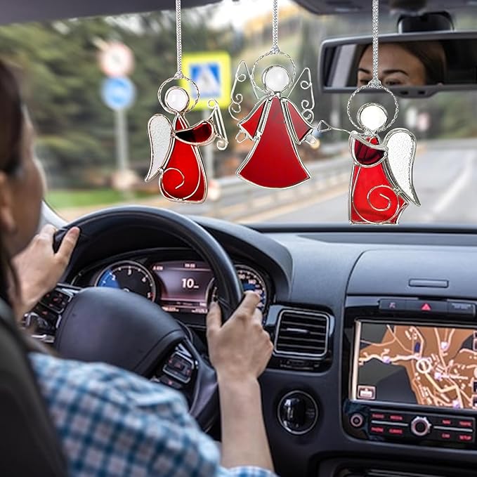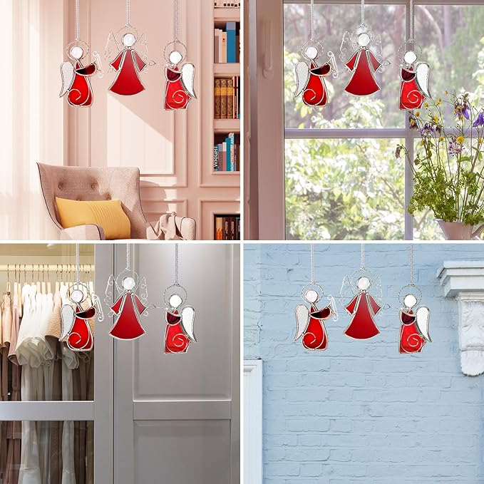- 🎄【Easy to Hang】- Each stained glass Angel suncatcher ornament comes with a metal ring, you can use a string to hang it anywhere you want to decorate. It's a hassle-free way to add a beautiful touch to any space.Wherever the place is - Christmas Tree, glass doors, kitchen window, upstairs windows, circle-head window, front window, bedroom window, kitchen door or as welcome signs on hanger stands.