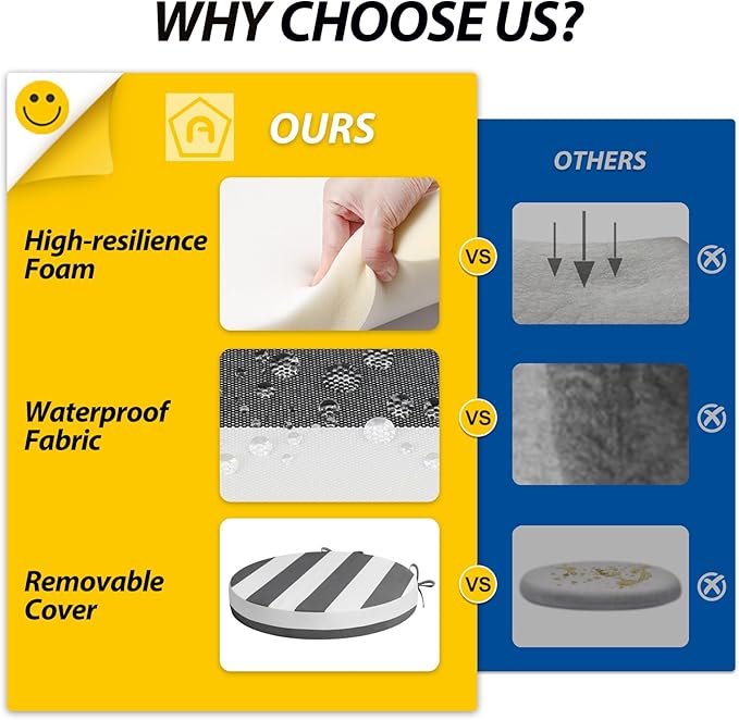 - Wide Use & Tips: These outdoor dining chair cushions fit pools, patios, balconies, decks, backyards, and gazebos. Foam inserts and covers are packed separately in bags and placed in one box—check all parts. Easy assembly required