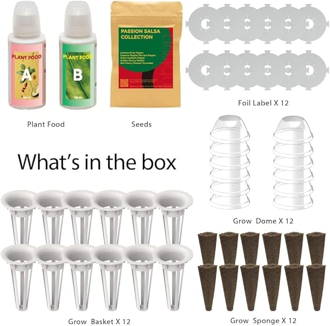 - 【All-IN-ONE Home Garden】These hydroponic pods provide everything you'll need to start your indoor herb garden. 7 types of 350+ asian herb seeds, 7 growing sponges, growing baskets, growing domes and pod labels, 200ml A&B plant food. It's suitable for both beginners and experienced gardeners