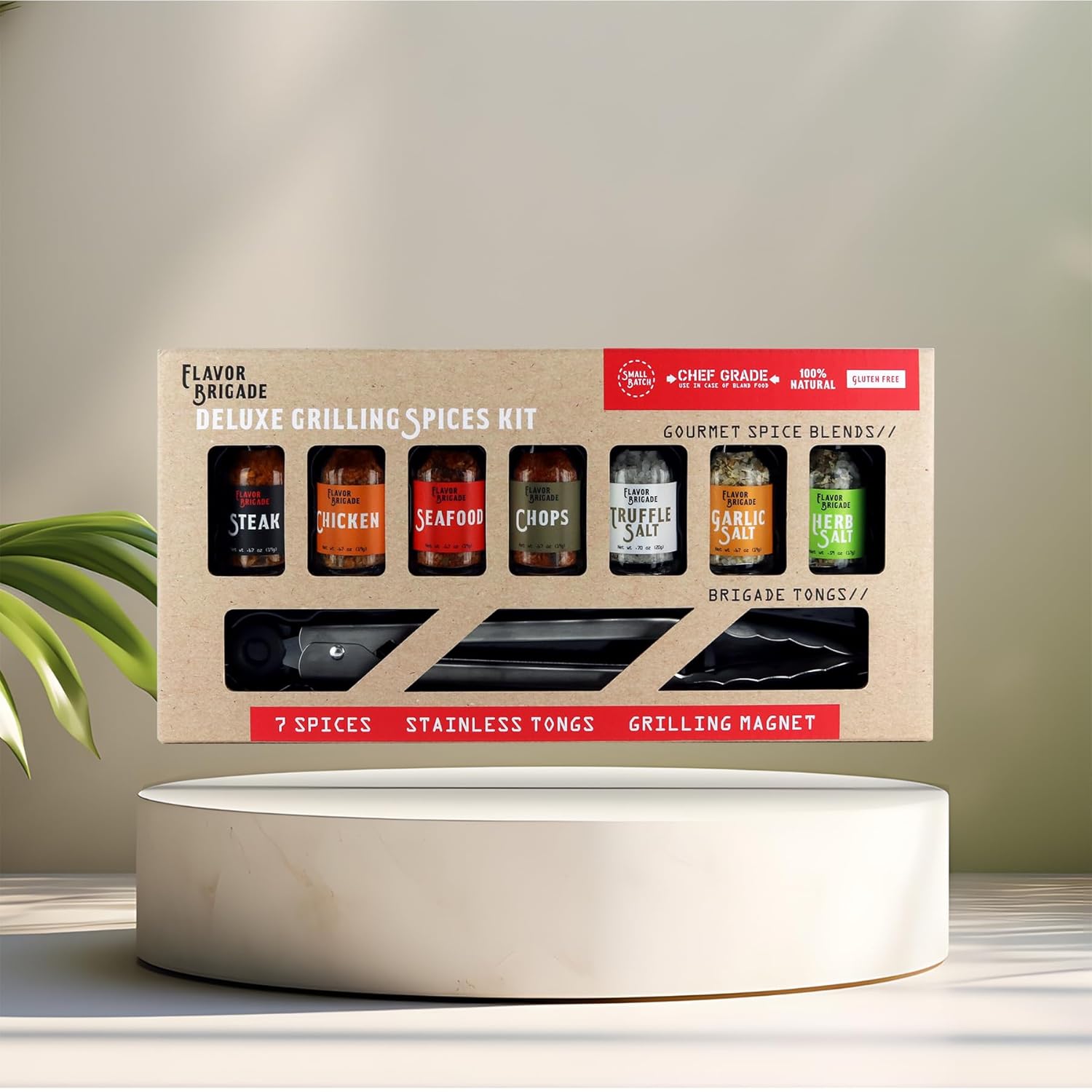 - Gift Ready: Includes 9 items, Spice Blends, Flavored Salts, Rubs, 9 inch Stainless Tong, Grilling Temp/Time Magnet, Gift Box.