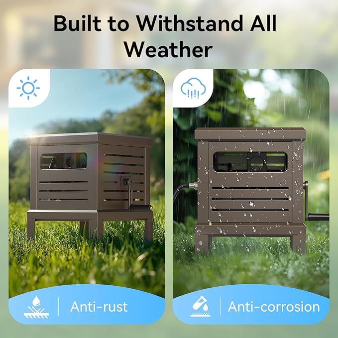 - Strong Metal Construction: Built from strong metal with a rust-resistant finish, this water hose reel is designed for long-lasting outdoor use. Its durable design makes it perfect for homeowners and gardeners who need reliable hose storage