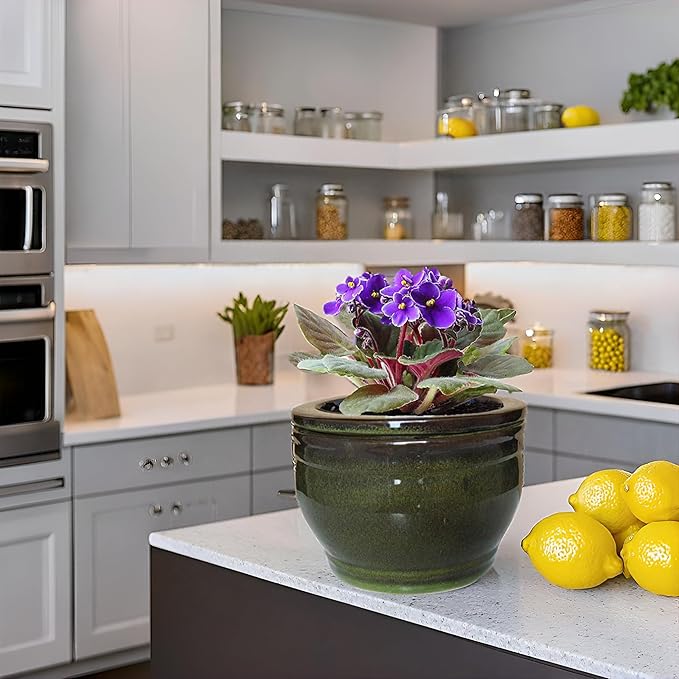 African Violet Pots Self Watering Round Ceramic Violet Pot (Olive drab, 6 inch)