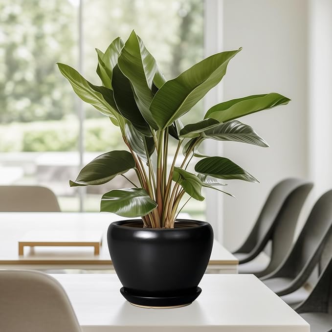 • 6 Inch Planter with Drainage Hole and Saucer: There is a drainage hole at the bottom of the ceramic plant pot, which can discharge excess water and benefit the growth of plants; the lightweight ceramic tray can keep your desktop clean