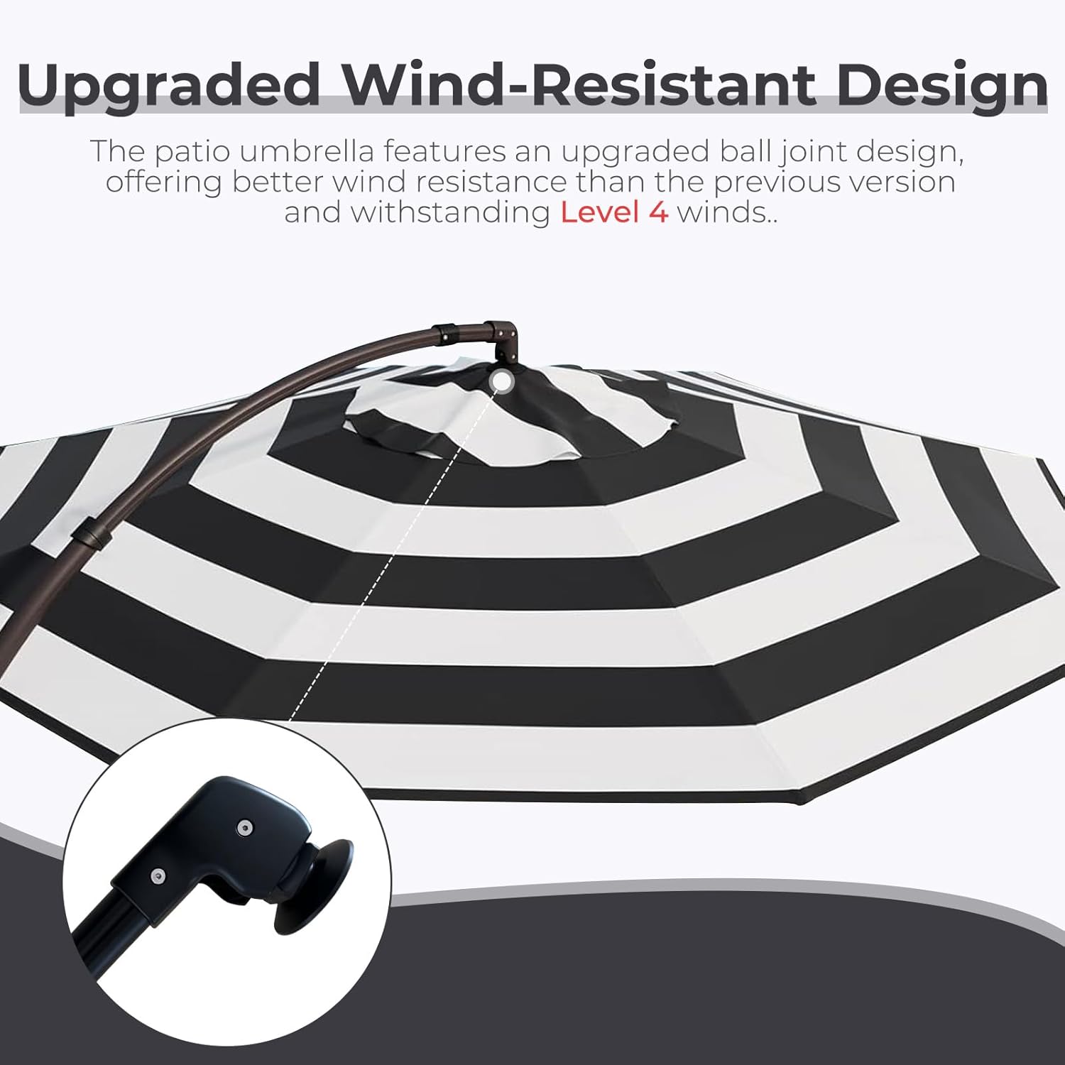 - STURDY STEEL RIBS: Enjoy unparalleled stability with our premium offset umbrella, boasting 8 heavy-duty ribs that ensure exceptional stability even in windy conditions