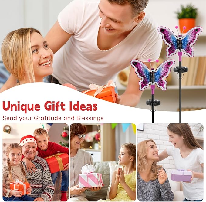 Butterfly Solar Lights, Solar Butterfly Outdoor Light, Garden Decor,Neon Butterfly Garden Lights for Outside, Yard, Pathways,Patio, Lawn, or Landscaping Decor (Amaranth, 2 Pack)