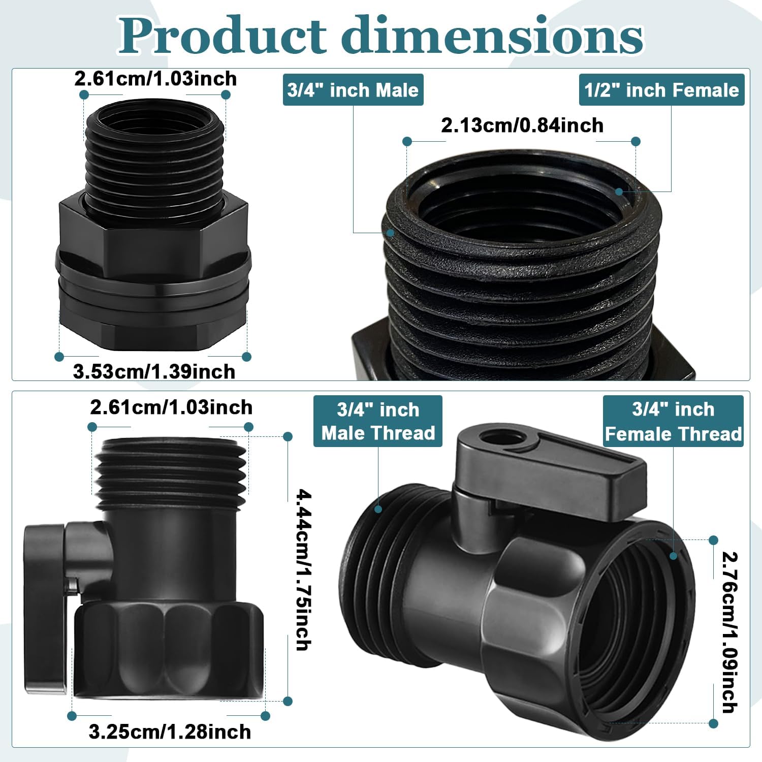 - Widely applicable: Garden hose shut-off valve+garden hose bulkhead fitting is suitable for water tanks, towers, inlets and outlets, rainwater buckets, homemade water storage buckets, as well as various pipes, accessories, hoses, faucets, etc
