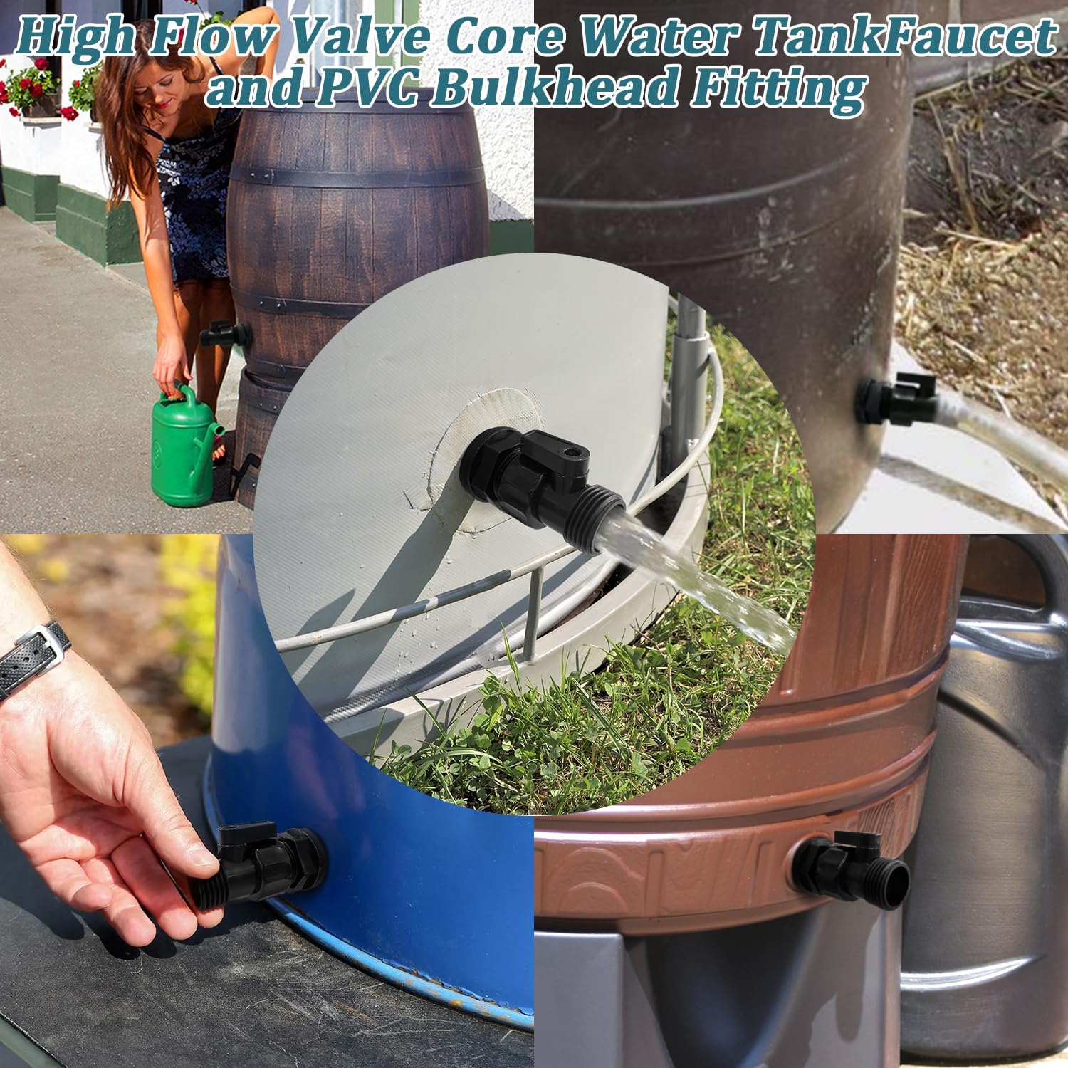 - Easy to Use:You should open a 1-1/16 to 1-1/8 inch hole on the rainwater bucket, thread the Bulkhead Fitting through the hole of the rainwater bucket, and tighten it to ensure no water leakage and connecting the garden hose shut-off valve, the water flow can be easily controlled