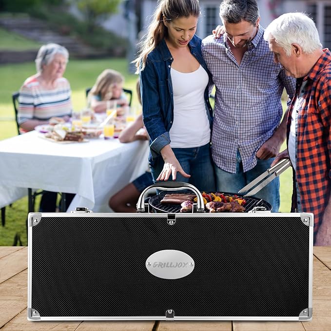 Grilljoy BBQ Accessories Grill Tools Set - 22PCS Stainless Steel Barbecue Grill Accessories for Outdoor Grill with Black Aluminum Case - Grilling Gifts for Men Dad -Grill Tools Kit
