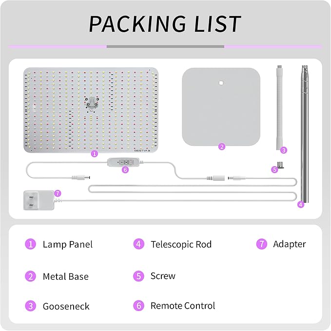- Easy to Install & Easy to Use :Equipped with all the mounting kit, just follow the easy to install instructions to fit the base, fix the gooseneck, adjust the height and switch it on, very easy and quick! And made from ultra-thin aluminium, this plant grow light is lightweight, dissipates heat well and provides extensive light coverage, perfect for indoor use
