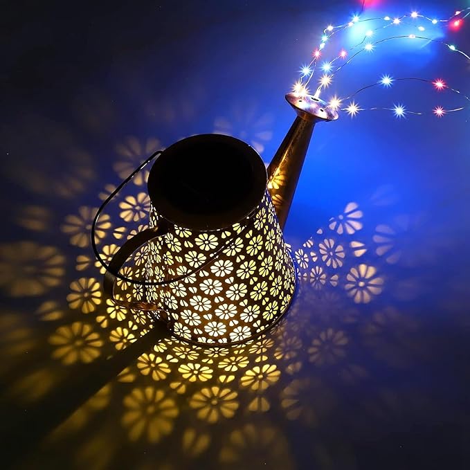 - 【Charming Garden Decoration Lights】: 2 watering can lights will be a charming addition to your patio at night, emitting bright lights that looks like strings of shining stars pouring out of a watering can, casting beautiful patterns on the ground for a romantic atmosphere. You'll love them when they light up your garden.