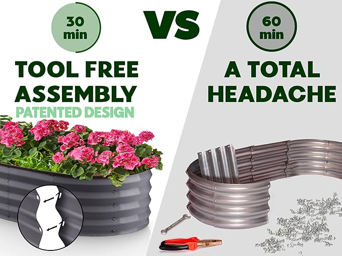 Galvanized Raised Garden Beds Outdoor // 8×2×1 ft Planter Raised Beds for Gardening, Vegetables, Flowers // Large Metal Garden Box (Gray) // Patented Tool-Free Design