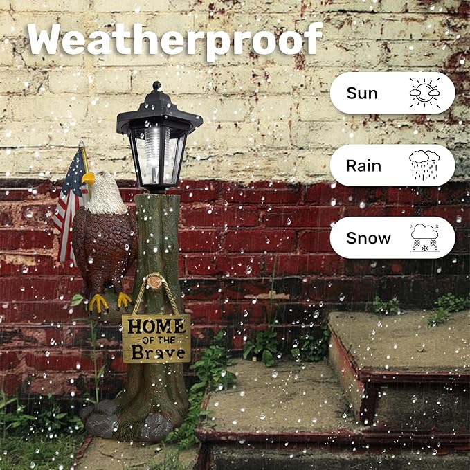 • VERSATILE OUTDOOR DECORATION: Enhance gardens, patios, or backyards with this eagle statue. Its bold design adds a patriotic touch and suits various styles. Secure it on uneven surfaces by digging a hole or placing heavy objects for stability.