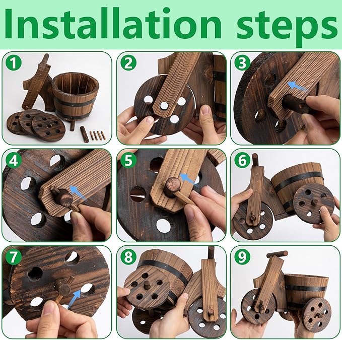 - Easy to insatll:You can simply assemble this decorative garden planter according to the product's photo instructions. The installed wooden wheels can be rotated, making it very stable and easy to move even when filled with soil and plants.