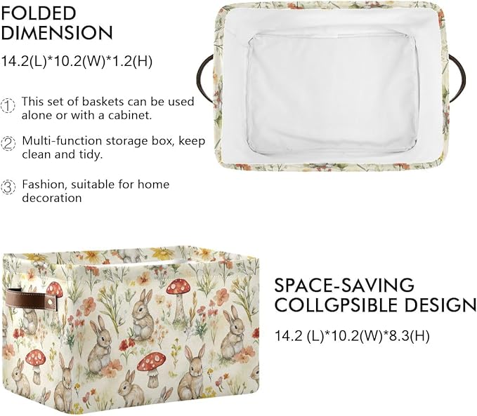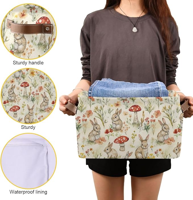 Easter Mushroom Rabbit Rectangular Storage Basket Organizer Bin Shelf Baskets For Clothes Gifts For Home Office Dorm